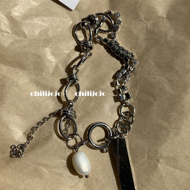 韩国ins设计感淡水珍珠手链网红个性时髦冷淡风粗链条吊牌手链热门设计联盟服务商